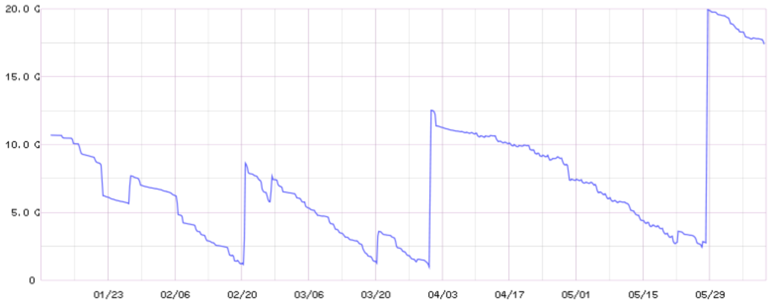 | Additional Information | there is definitely an indication that http://bugs.caucho.com/view.php?id=5042 [^] is possibly still an issue. Here is a graph of “disk free" over the past Note: 0000006 months. You can see when we have to periodically clean house to recover disk. Since our last email, it appears that the trend is continuing. | ||||||||
