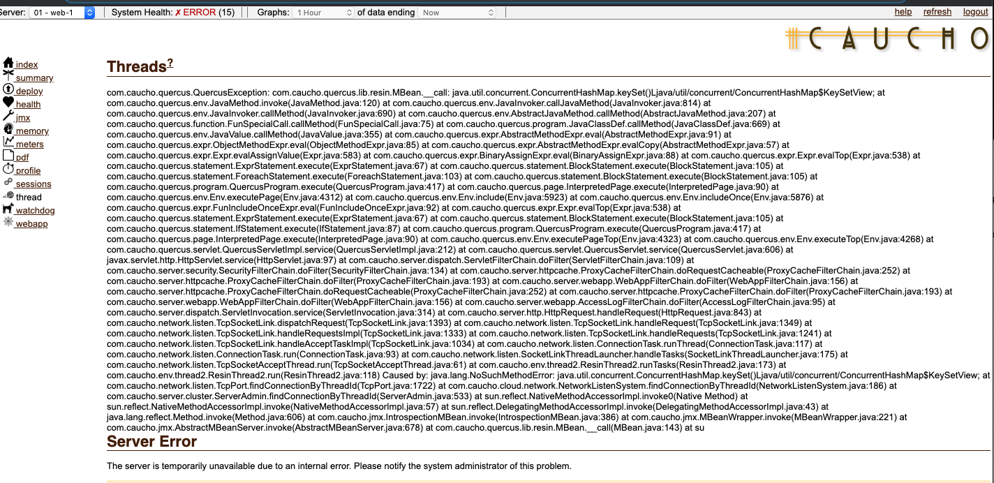 See attached screenshot. It looks like a NoSuchMethodError similar to http://bugs.caucho.com/view.php?id=6288. [^] |