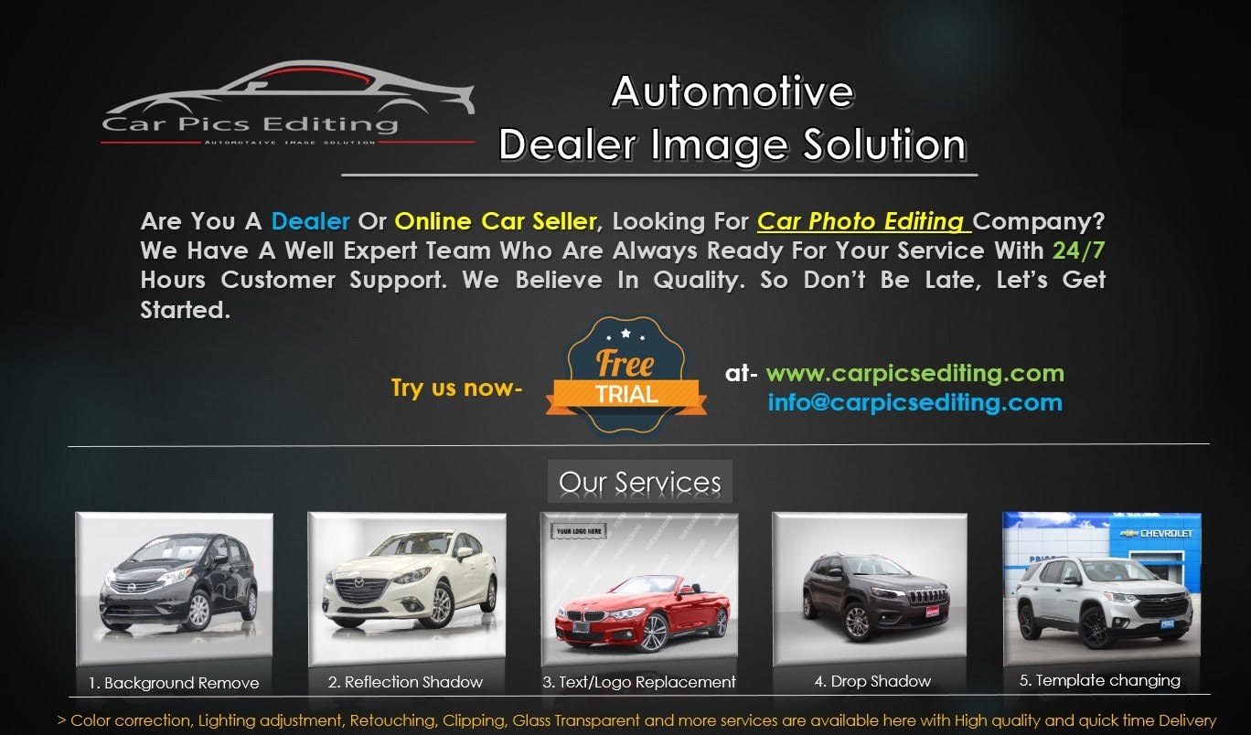 CARPICSEDITING is a High-quality Automotive image editing service provider. We provide every kind of image editing service at a cheap rate. Please check out our services: Automotive Dealer Photo Editing Services Automotive Background Replacement Vehicles Shadow Making & Retouching Service Car Text Up And Banner Adding Background / Template Customizing Automotive Photo Re-Sizing/ Cropping Car Enhancement Vehicles Clipping Path Add Your Company Template Automotive Lot Service Vehicles Color Correction Vehicles Retouching Service Automotive Dealer Image Editing Car photo Fix Car Image Editing https://carpicsediting.com/automotive-photo-retouching-service-car-photo-retouching-service-vehicles-photo-retouching-service.html [^] |
